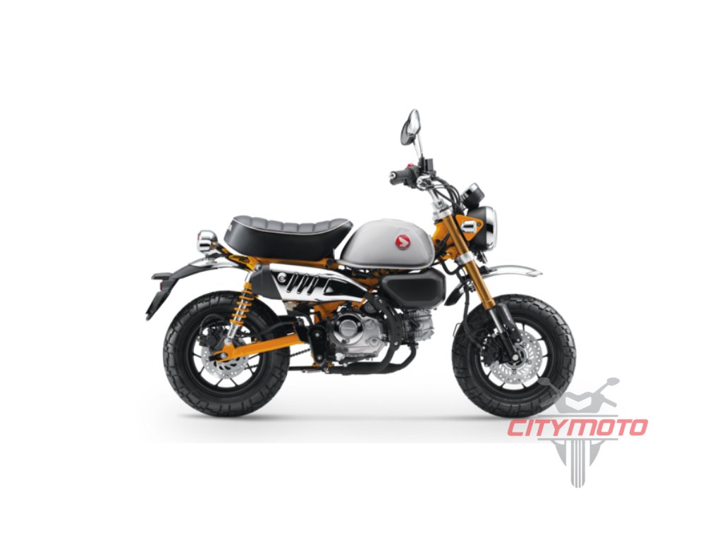 Modelu Monkey se žádný jiný nevyrovná. Má svůj osobitý styl. A jedinečný charakter. Chromovaná, vysoce posazená řídítka a navíc rám, kyvná vidlice a tlumiče nalakované stejnou barvou jako drobná palivová nádrž – a vysoce zvednuté blatníky – to vše přitahuje pozornost, stejně jako mohutné pneumatiky s blokovým vzorkem. Pod ním se však skrývá úsporný vzduchem chlazený motor o objemu 125 cm3 a pětistupňová převodovka, které jsou uchyceny v robustním podvozku s brzdovým systémem ABS řízeným IMU. Je také malý a lehký, váží pouze 104 kg a má pohodlné sedadlo ve výšce pouhých 775 mm od země. Malý motocykl s velkým srdcem, který vás bude bavit. To je Monkey.