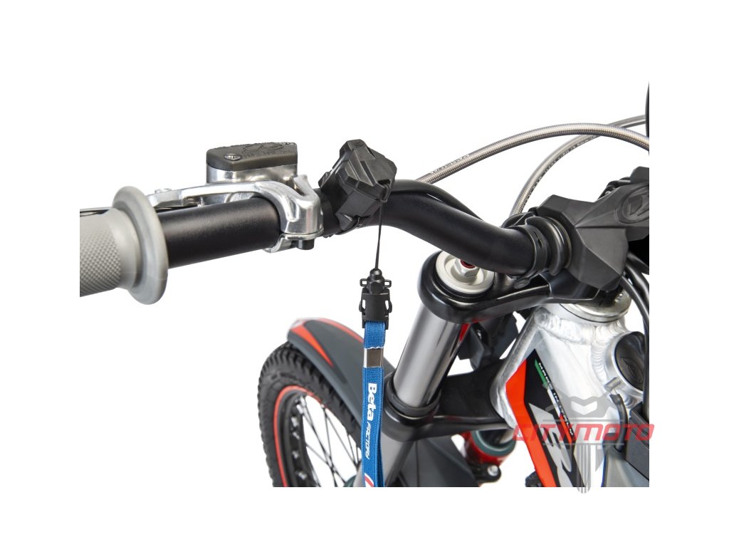 Elektronický klíč: toto nové elektronické zařízení je držitelem exkluzivního evropského patentu uděleného společnosti Betamotor (EP3064405B1) a poskytuje funkci ochrany proti krádeži a zároveň chrání motocykl a jeho jezdce. Elektronický klíč je dvoudílná součást: jedna část zůstává připevněna k řídítkům motocyklu, zatímco druhá je magnetická (jezdec jej nosí se šňůrkou kolem zápěstí), který zastaví motor motocyklu v případě, že dojde k odpojení. Na rozdíl od normálního Kill-Switche však nový elektronický klíč obsahuje také funkci ochrany proti krádeži, která zabraňuje nastartování motocyklu při odpojení, a to díky kódování, které jedinečně spojuje motocykl s klíčem a chrání tak před krádeží, když je ponecháte motocykl bez dozoru. Větší ochrana pro motocykl a jezdce v jediném řešení, které je výhradně patentováno společností Betamotor; poprvé jako standardní výbava.