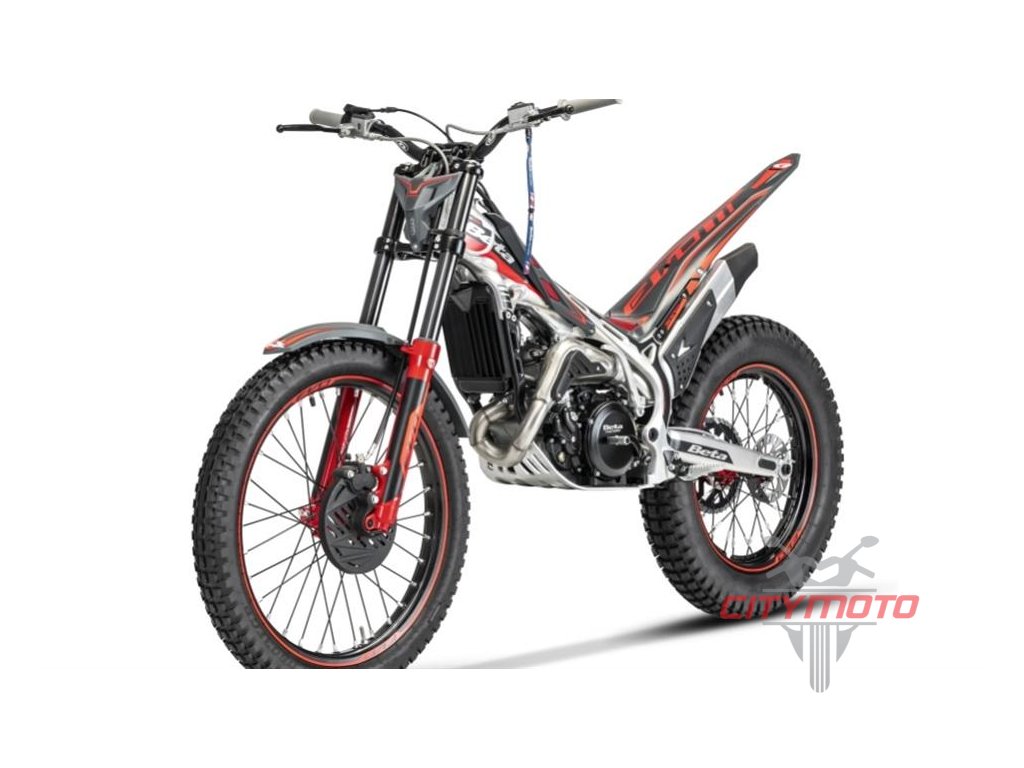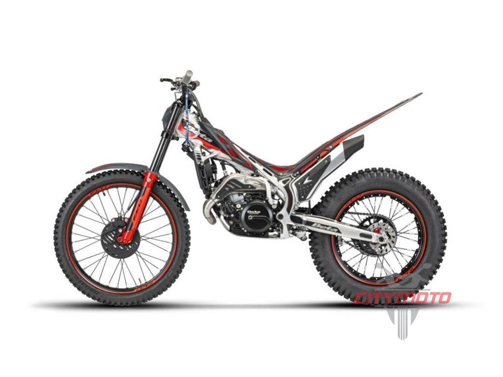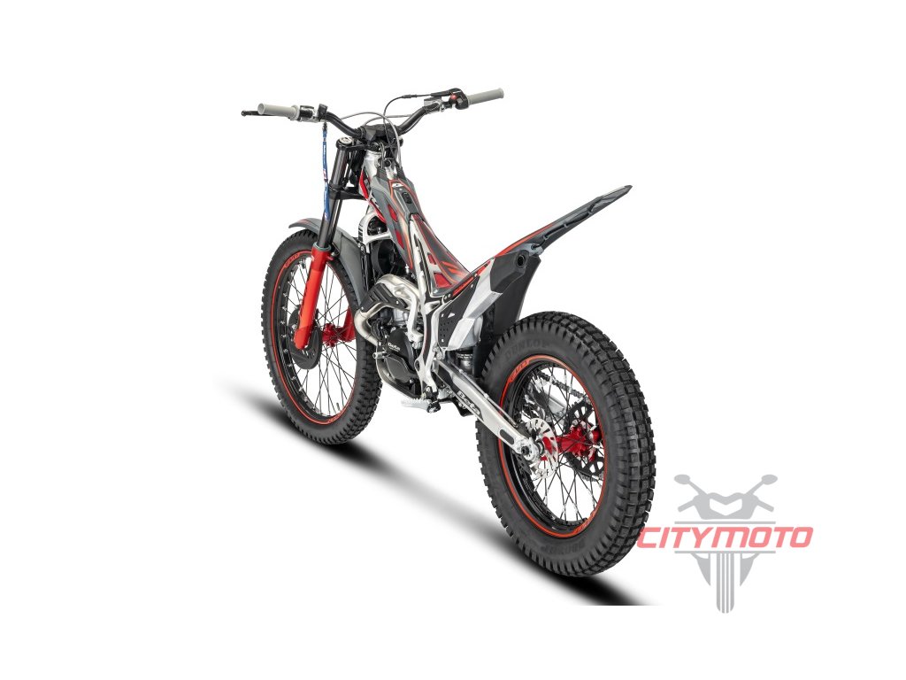 Šikovné použití červené, v tomto případě použité pro zvýraznění šedého základu namísto primárního prvku, povyšuje vzhled motocyklu a vyzdvihuje původní estetiku. Frézovaná hliníková kyvná vidlice a rám zdůrazňují pevné spojení motocyklu se závoděním, kde jsou materiály čisté a vše je navrženo pro maximální výkon. Díky inovacím představeným v předchozím modelovém roce, díky nimž řada EVO stojí na vrcholu trialového sektoru, jsou všechny nedávné přírůstky do motocyklu potvrzeny i pro rok 2024, avšak s aktualizacemi estetického dopadu s novou grafikou. Hlavní novinkou z hlediska výbavy je zavedení elektronického klíče (trhačky), který hraje dvojí roli a kombinuje tradiční pasivní ochranu motocyklu a bezpečnostní funkci pro jezdce tradičně reprezentovanou přepínačem Kill-Switch s inovativní funkcí ochrany proti krádeži. Řada EVO je jednou z nejrozsáhlejších v této třídě a nadále nabízí celkem šest různých modelů, z nichž každý má svůj vlastní charakter a je schopen vyhovět potřebám všech jezdců, čímž zvyšuje potenciál a úroveň požitku, kterou každý zažije.