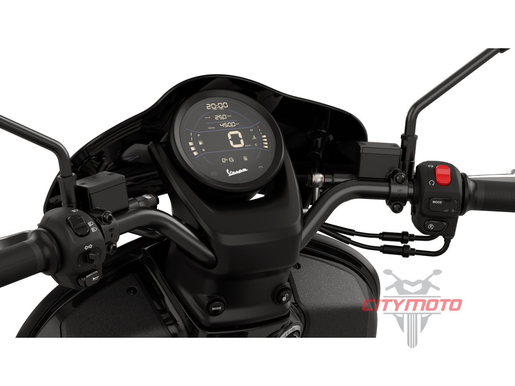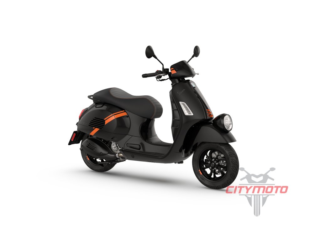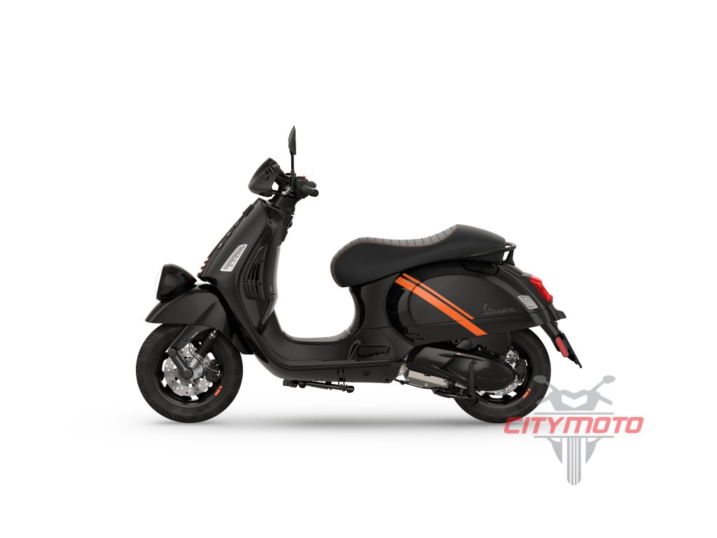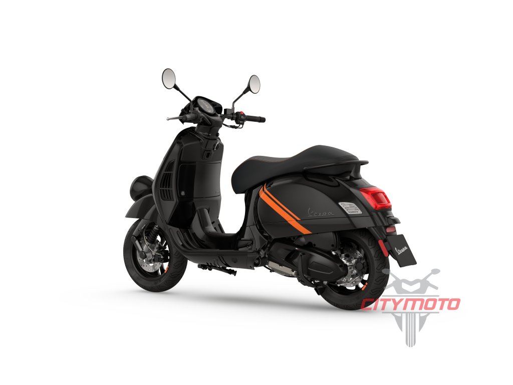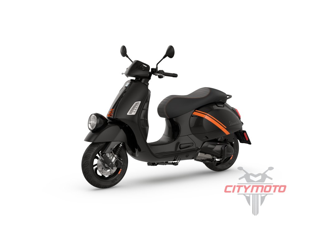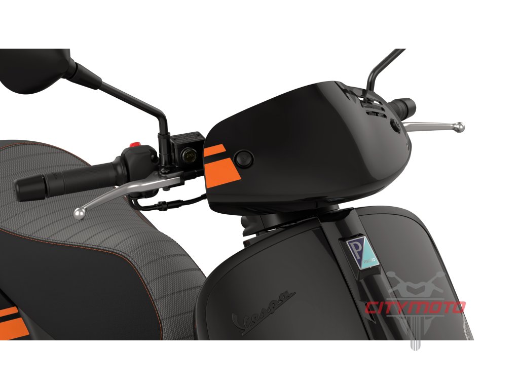 Nejnovější model převzal všechny ikonické prvky modelu GTV. Jsou tu charakteristická odhalená řídítka, a samozřejmě také světlo umístěné na předním blatníku. K tomu nové GTV přidává elegantní high-tech prvky, které podtrhují její inovativní charakter. Jednomístné sedlo, speciální kapotáž a matně černé detaily jsou jen některé z prvků, které dodávají Vespě GTV odvážnou, sportovní osobnost. Pětipaprsková matně černá kola a kontrastní oranžová grafika na bocích jsou také poklonou závodnímu světu.