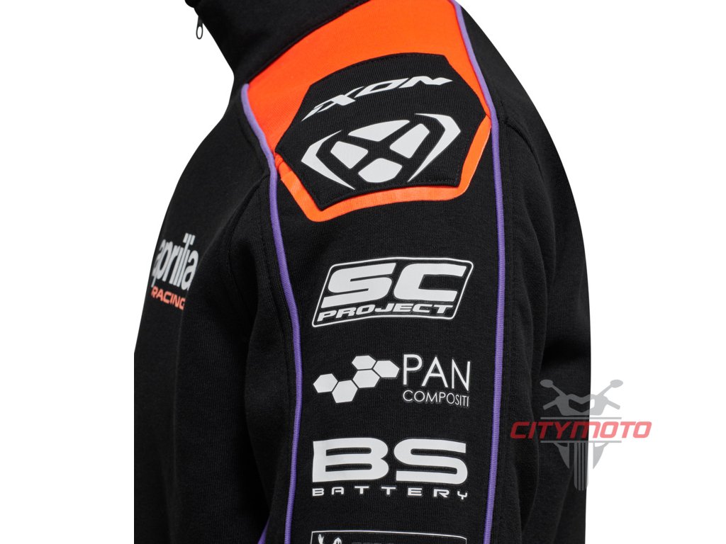 Většina oblečení je černá, s červenými akcenty dodávají celku sportovní, závodní charakter. To je posíleno logem Aprilia Racing a četnými logy od oficiálních sponzorů. Kolekce Aprilia Racing Teamwear je tak ideální volbou pro fanoušky závodění.