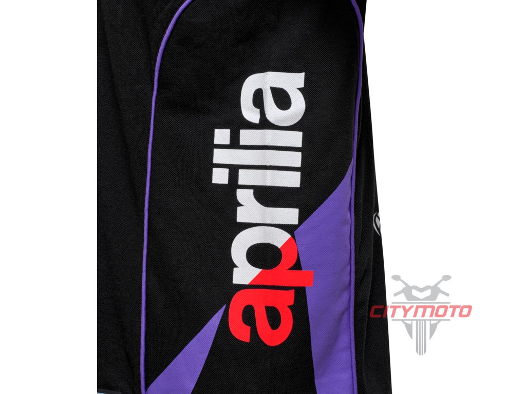 Oděvy jsou většinou černé, červené akcenty dodávají celé věci sportovní závodní charakter. To je dále zdůrazněno logem Aprilia Racing a četnými logy oficiálních sponzorů. Díky tomu je kolekce týmového oblečení Aprilia Replica ideální volbou pro fanoušky závodění.