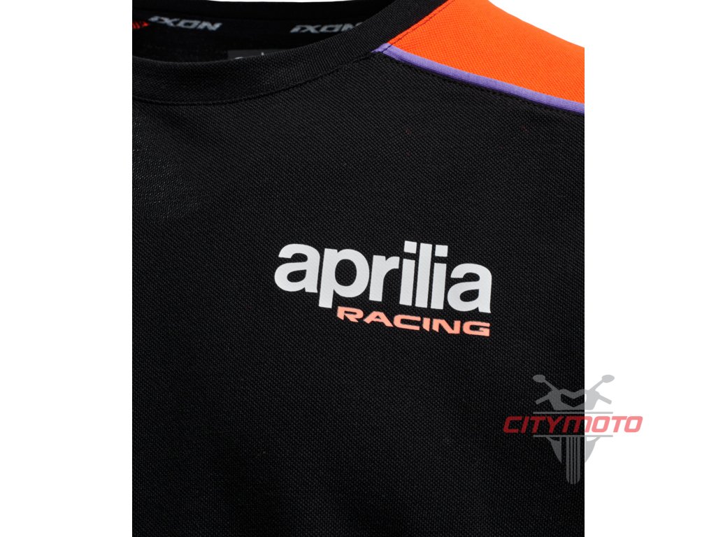 Většina oblečení je černá, s červenými akcenty dodávají celku sportovní, závodní charakter. To je posíleno logem Aprilia Racing a četnými logy od oficiálních sponzorů. Kolekce Aprilia Racing Teamwear je tak ideální volbou pro fanoušky závodění.