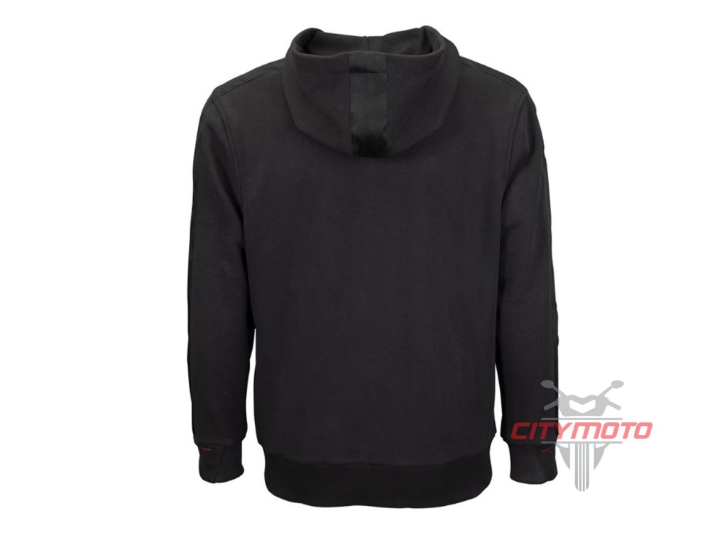 Tato mikina má mnoho detailů, které připomínají styl Moto Guzzi a zejména V85TT, jako jsou zipy a poutka v červené barvě Moto Guzzi a prošívání manžety inspirované červeným pomocným rámem V85TT.