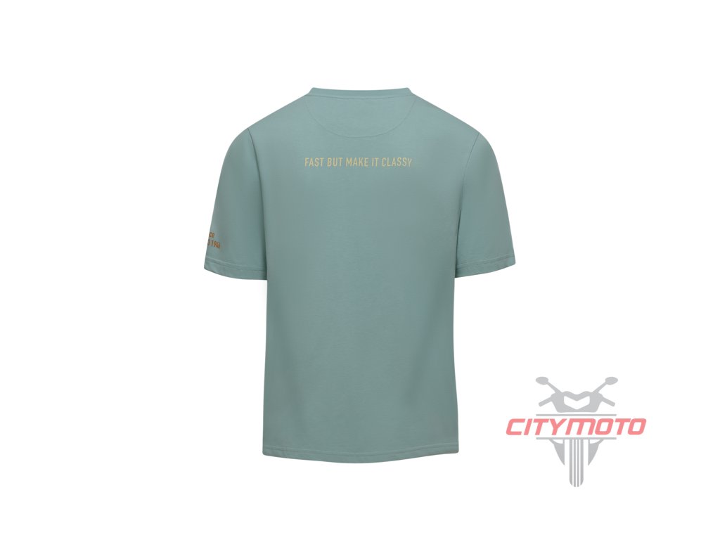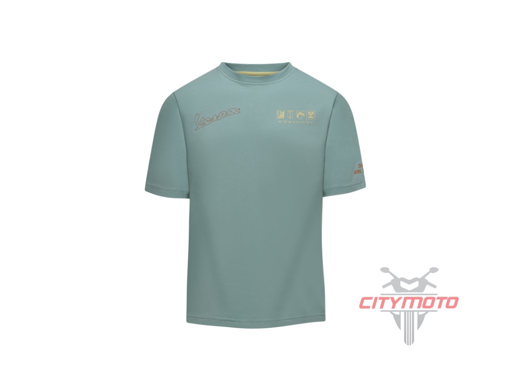 Design je minimalistický, díky čemuž lze tričko snadno kombinovat s různými outfity. Ať už se nosí s džínami pro ležérní vzhled, nebo pod sakem pro trochu šik styl, toto tričko je univerzální a nadčasové. Hodí se jak pro fanoušky značky Vespa, tak pro každého, kdo hledá jednoduché a kvalitní tričko.