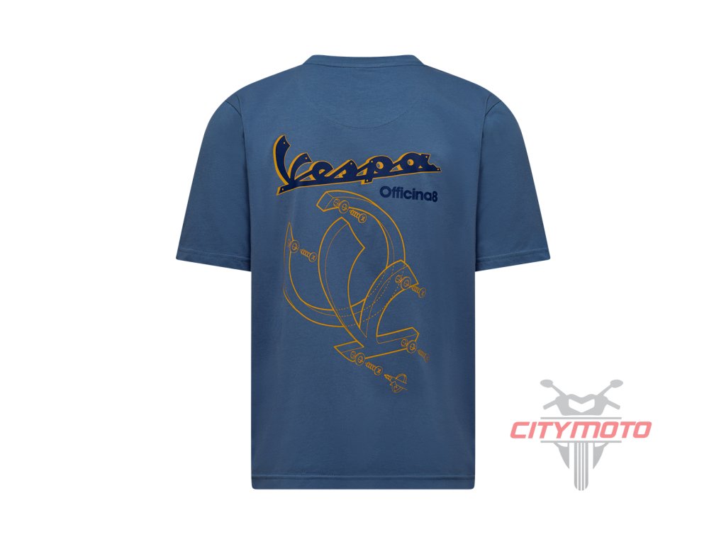 Logo Vespa Officina 8 je nezaměnitelným prvkem tohoto trička ze 100% bavlny, které má také exkluzivní tištěný vnitřní štítek.