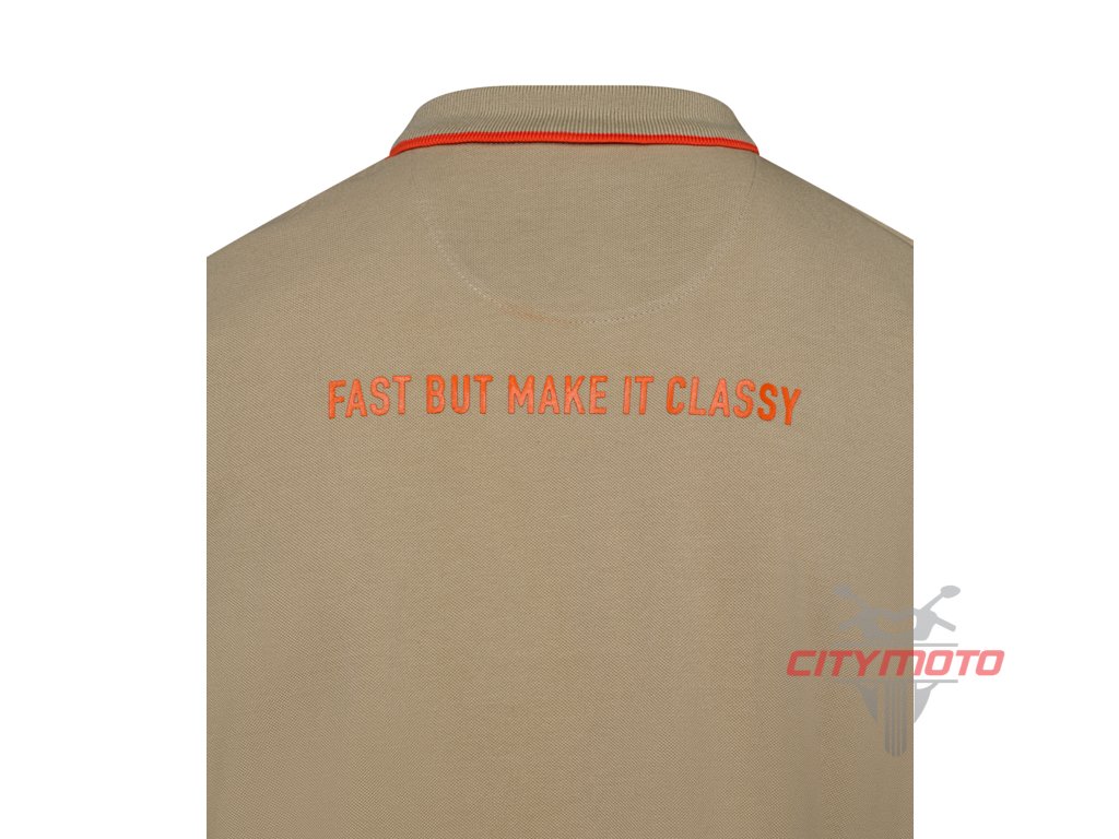 Design je minimalistický, což usnadňuje kombinaci póla s různými outfity. Ať už s džínami pro ležérní vzhled nebo pod sakem pro elegantnější styl - toto pólo je všestranné a nadčasové. Je vhodný pro fanoušky značky Vespa i pro ty, kteří hledají jednoduché, kvalitní pólo.