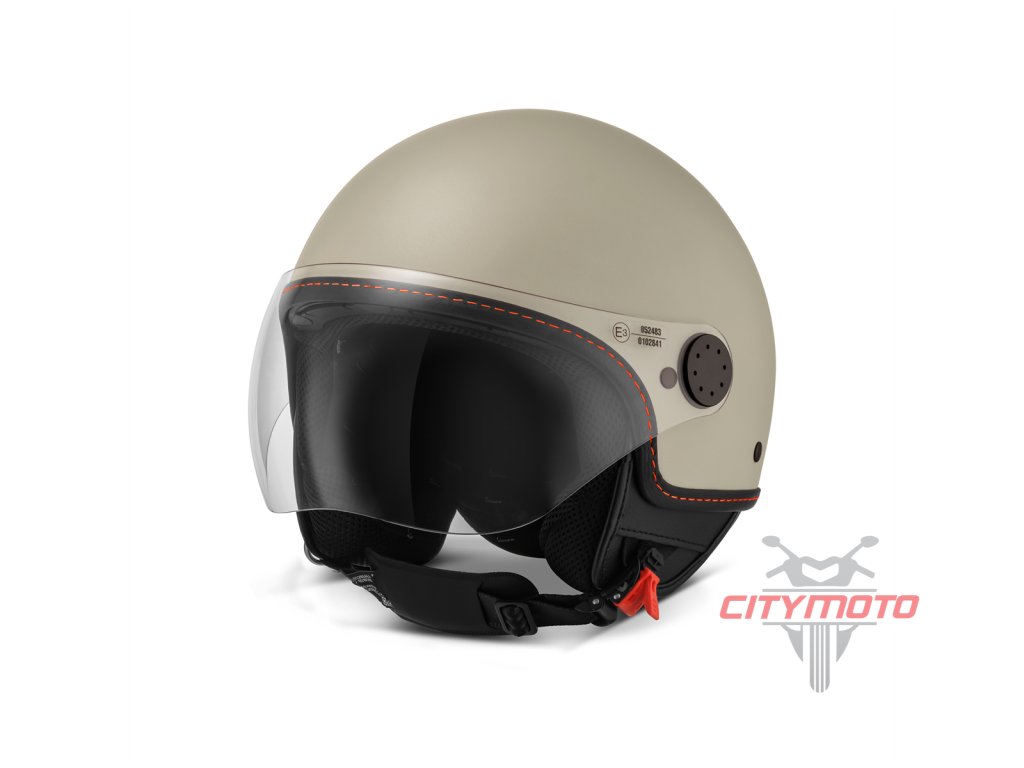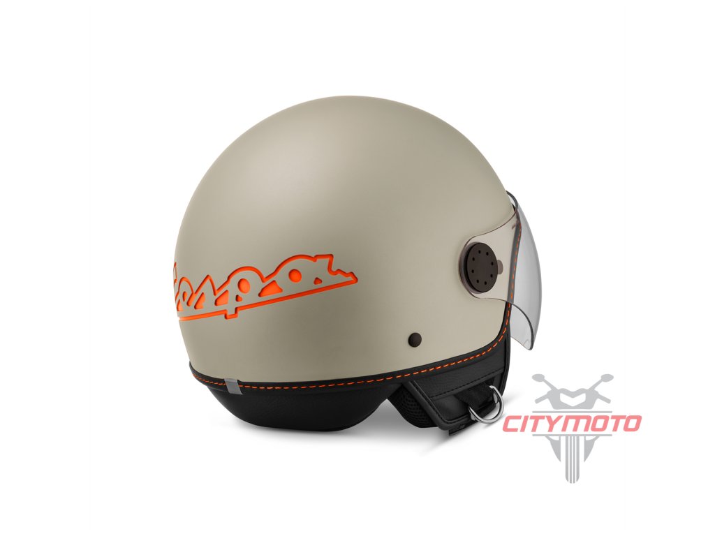 Na zadní straně skořepiny přilby je barevně sladěné vyryté logo Vespa – jemný, ale stylový detail. Mikrometrický uzavírací systém s integrovaným kroužkem proti krádeži nabízí bezpečné držení a vysoký komfort nošení.