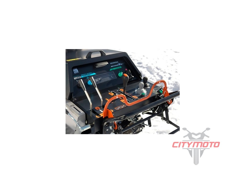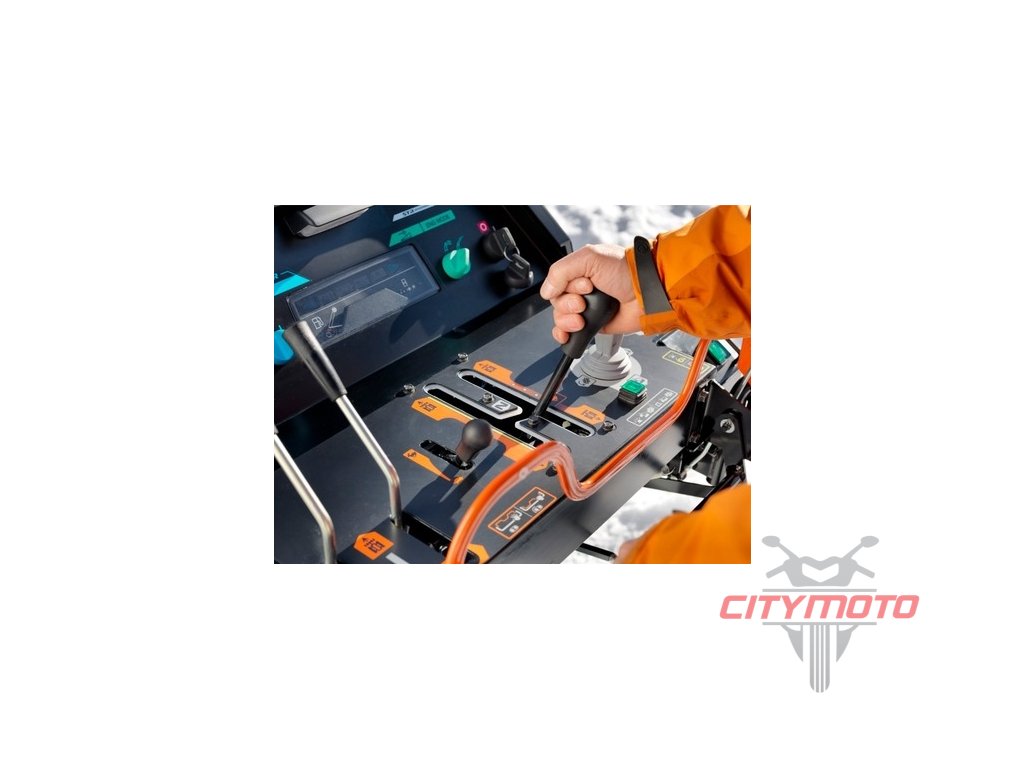 Pásy pojezdu jsou řízeny hydrostatem s plynulou a citlivou regulací rychlosti jízdy. Celý systém jak frézování, tak i pojezdu je ve spojení s motorem elektronicky řízen, tak, že ovládání motoru je automatické v závislosti na zatížení jak od převodovky pojezdu, tak od frézovacího mechanizmu. Fréza si dle aktuální zátěže automaticky upravuje i rychlost pojezdu. Při couvání se frézovací komora zvedne a při jízdě vpřed se automaticky zas vrátí do původní výšky. Tato fréza je opatřena tzv. „G“ senzorem, který automaticky zajišťuje i stranové naklápění frézovacího mechanizmu vzhledem ke svahu. Komfort ovládání je na maximální možné míře pomocí ovladačů, přehledně uspořádaných na ovládycím pultu stroje. Pro majitele parkovišť, lyžařských areálů, hotelů, ubytoven, penzionů a jiných firem, kteří potřebují spolehlivě a rychle odklízet velké množství sněhu z velkých ploch nenajdou na trhu lepší a výkonnější stroj. Stroj ideální do profesionálních služeb.