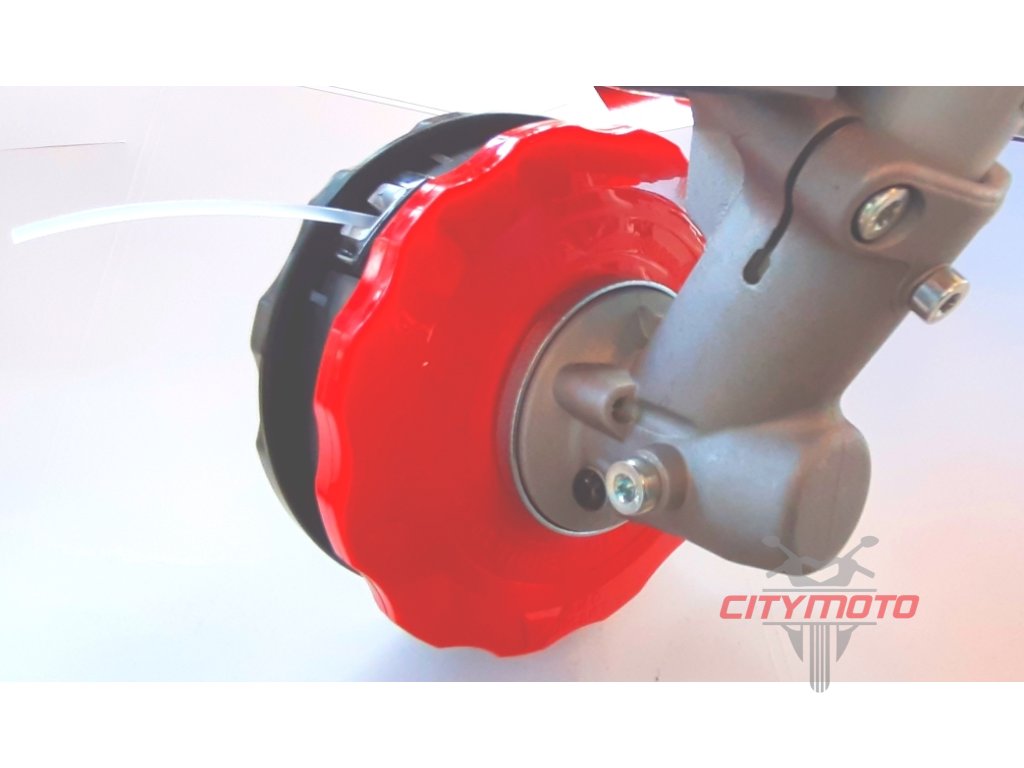 Poloautomatická profesionální strunová hlava o ∅ 140 mm se systémem postupného uvolňování žací struny typu "Bump & Feed". Tento systém umožňuje, že nylonová žací struna např. o ∅ 2,4mm namotaná na cívce poloautomatické strunové hlavy se v případě potřeby automaticky prodlouží odtředivou silou při pouhém poklepu strunovou hlavou za chodu o zem. Pokud je povysunutí struny nedostačující, poklep o zem zopakujte. Pokud dojde k nadměrnému vysunutí struny, bude struna automaticky zaříznuta na optimální délku břitem, umístěným na ochranném krytu vyžínače. Když je zásoba struny na cívce spotřebována, její doplnění je velmi snadné. Zásobu nové struny v délce 7m (∅ 2,4mm) provléknete otvory ve strunové hlavě označenými "∇ INSERT" tak, aby na každé straně zůstala polovina celkové délky a manuálním otáčením spodní části strunové hlavy ve šměru šipky zásoubu struny na cívku uvnitř hlavy navinete. To vše bez použití nářadí a není nutné strunovou hlavu nijak rozebírat, či demontovat. Spolehlivý systém tak umožní pracovat bez přerušení a včas dokončit svoji práci.