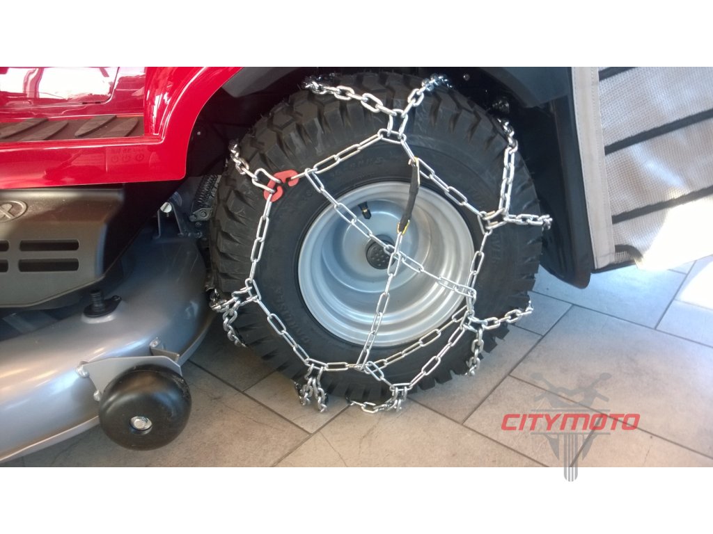 Pro zlepšení trakčních schopností na kluzkém nebo zasněženém povrchu lze na hnanou nápravu traktoru namontovat sněhové řetězy. Velikost sněhových řetězů záleží na modelu traktoru.