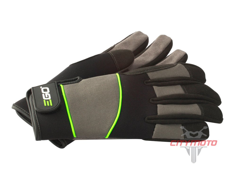 Pracovní rukavice EGO jsou velmi pohodlné a příjemné pracovní rukavice ze syntetické kůže, vnější strana kloubů chráněna pružným neoprenem, hřbet ruky ze strečového odolného materiálu. Suchý zip na zápěstí usnadňuje navlékání rukavic. Pěnové výstelky na dlani pohlcují vibrace. Rukavice jsou přímo určené pro práci se sekačkami, řetězovými pilami, křovinořezy, vyžínači, nůžkami na živý plot, fukary apod.