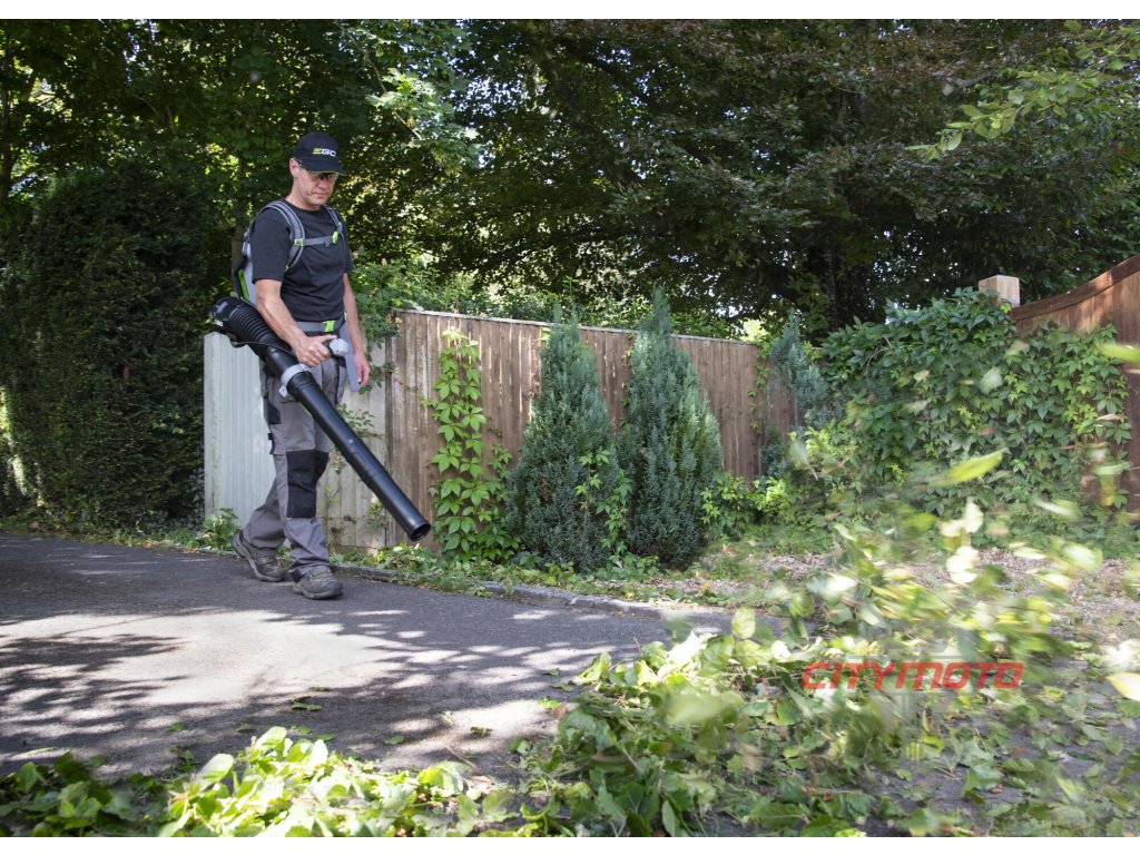 Profesionální úklid povrchů vyžaduje výkonný a spolehlivý stroj. Uklizený trávník a pěšinky na podzim v zámeckých zahradách, parcích nebo na zahradách většinou zakryje vrstva spadaného listí z okolních stromů. Nebo čisté chodníky ve městech, areálech nemocnic, škol a dalších institucí citlivých na hlučnost zbavené zbytky posečené trávy a jiných nečistot. A to je v podzimním počasí spadané listí pořádně těžké. To je práce přesně pro tento zádový fukar. Zádový AKU fukar LBPX1100 je "větší brácha" profesionálního fukaru LBPX8000 a disponuje výkonným dmychadlem zvětšeného průměru a v režimu "BOOST" vyfukuje 1870 m3 vzduchu rychlostí až 305km/h. Dokonce je schopen spolehlivě "odfouknout" i vrstvu, čerstvě padlého sněhu z chodníků či parkovišť. Pro snadnou manipulaci je celý stroj dokonale ergonomicky vyvážen. Má podstatně nižší vibrace v porovnání s benzínovými foukači a mnohem tišší chod. Pohodlný, ergonomický a polstrovaný zádový postroj rovnoměrně rozloží zatížení stroje na bedrech uživatele, což činí z foukače ideální stroj pro opravdu nejnáročnější využití. Velkokapacitní výfukový tubus s možností použití ploché trysky obluha snadno nasměruje přesně do místa. Ovládací rukojeť je na tubusu letmo uložena tak, že se přizpůsobí každé postavě uživatele a je opatřena bezpečnostní pojistkou, která zaručuje v případě uvolnění okamžité vypnutí stroje. Na rukojeti je umístněn vypínač, který zajišťuje při stisknutí plynulé a postupné spuštění stroje a fixátorem pro aretaci aktuálně nastavené rychlosti. V horní části rukojeti je v dosahu prstu umístěno tlačítko "BOOST" a je zde umístěn dobře čitelný diplej s ukazatelem stavu baterií a dalšími provozními údaji. Díky příjemné ovládácí rukojeti potažené měkčenou gumou, je držení a ovládání fukaru při práci velmi stabilní, bezpečné a pohodlné i v chladném počasí. Inteligentní technologie "PEAK POWER" se dokonale stará o vyvážený odběr energie ze dvou napájecích baterií, i v případě že je každá jiné kapacity. Na pohon fukaru lze použít jakoukoliv systémovou baterii ze sortimentu EGO a např. dvě baterie 10,0Ah vám umožní pracovat nepřetržitě od 30 min v režimu "BOST" až do 200 minut v nízkém režimu. Naše lithiové baterie EGO Power+ 56V Arc Vám poskytnou dostatek energie pro pohon dostatečně výkonného a účinného bezuhlíkového elektromotoru s přímým náhonem na vysokorychlostní dmychadlo.