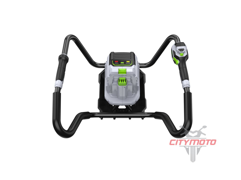 Pohonná jednotka půdního vrtáku EGO PHA7400E je opatřena ergonomicky navrženou ovládací rukojetí s variabilním ovládáním rychlosti otáčení vrtáku s přepínáním ve 2 rychlostních režimech a voličem zpětného chodu.