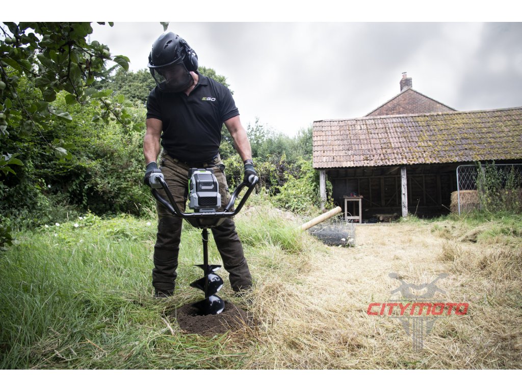Pohonná jednotka PHA7404E - Je výkonná pohonná jednotka půdního vrtáku EGO PHA7400E v sadě s 5Ah baterií (BA2800T) a rychlonabíječkou (CH5500E). Je opatřena ergonomicky navrženou ovládací rukojetí s variabilním ovládáním rychlosti otáčení zemního vrtáku s přepínáním ve 2 rychlostních režimech a voličem zpětného chodu.