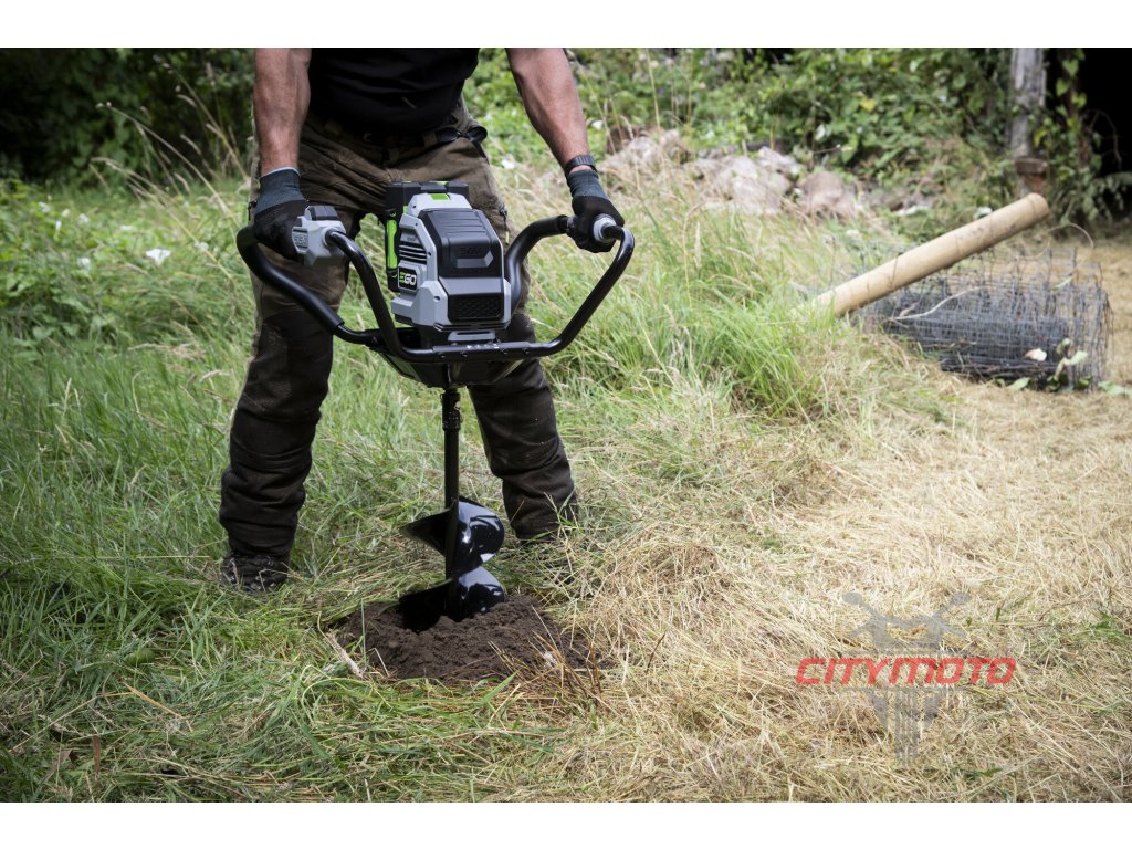 Zemní vrták EGO ETA0800 o průměru 20cm cm je navržen pro použití s pohonnou jednotkou EGO PHA7400E a je ideální pro vyvrtávání otvorů potřebných pro instalaci standardního oplocení, sloupků ohradníků a všude tam, kde je nutné vyhloubit díru o průměru 20cm. Vrták do země má 22mm "Quick-Connect" připojení pro rychlé, snadné a bezpečné nasazení a zajištění na pohonné jednotce nebo rychlou výměnu. Pro vrtání hlubší díry lze požít prodlužovací nástavec ABE2000 délky 50cm. Pro dlouhou životnost je robustní ocelová konstrukce nástroje ošetřena antikorozní práškovou povrchovou.