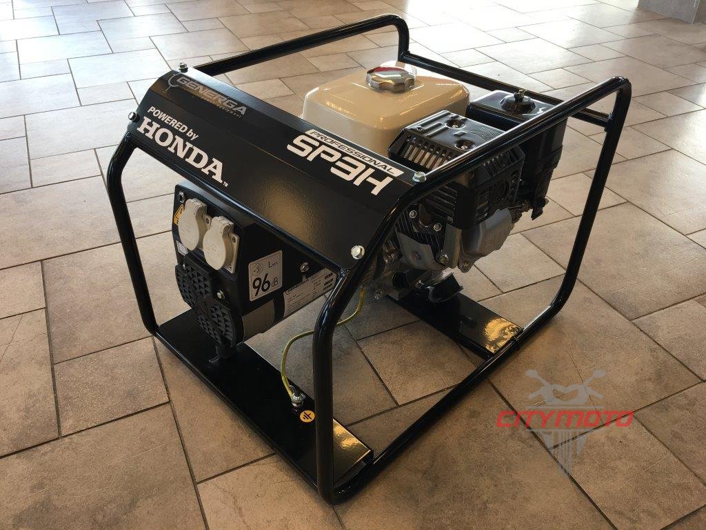 Elektrocentrála SP 3 H AVR: základní model jednofázových rámových elektrocentrál s regulací výstupu pomocí AVR. Výkonný alternátor pohání profesionální motor řady GX s lehkým startem.