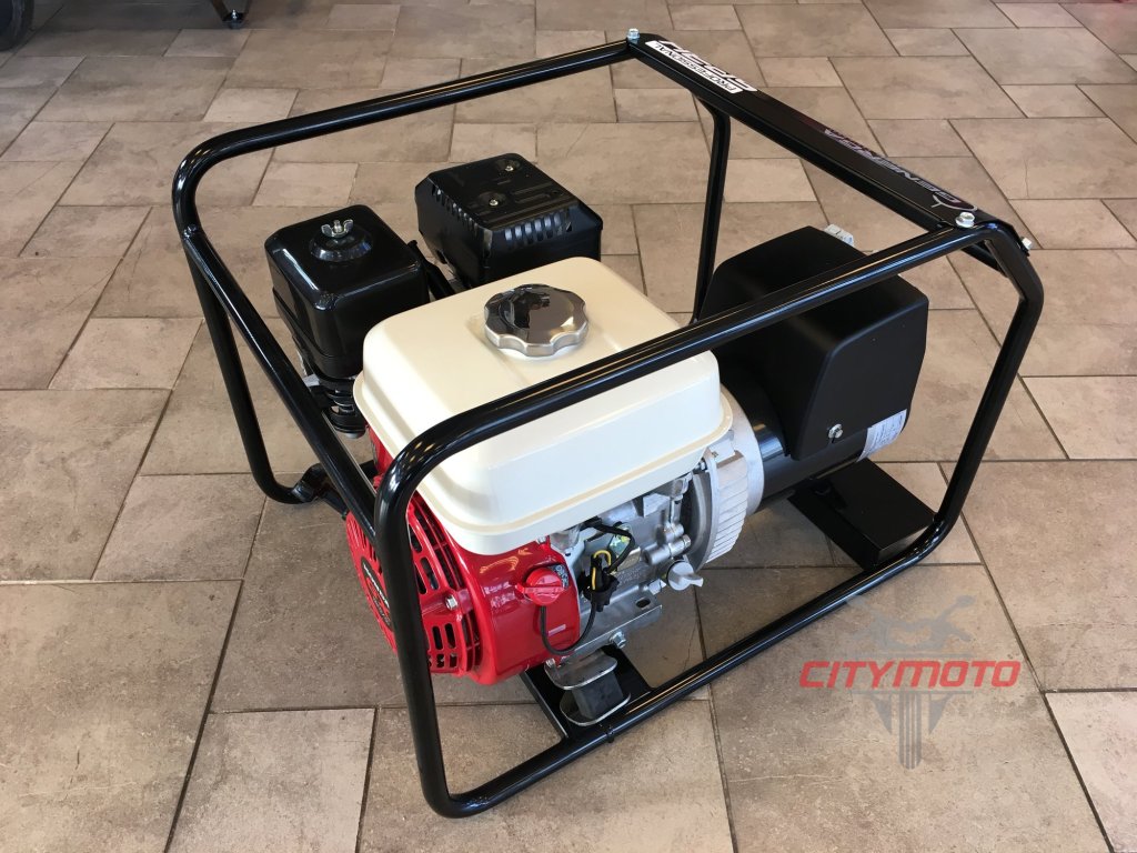 Tato malá, benzínová elektrocentrála střídavého napětí je svým výkonem určena převážně pro napájení malých spotřebičů typu osvětlení nebo ručního elektronářadí. Svými kompantními rozměry a nízkou hmotností se hodí do pojízdných autodílen, opravárenských vozů pro práci v terénu stejně jako do domácích podmínek. Celá soustava je uložena na pružných silentblocích v rámu, svařeném z ocelových trubek o průměru 20 mm. Ten zajišťuje dostatečnou ochranu soustavy proti případnému poškození a zároveň slouží jako transportní madlo pro snadnou manipulaci. Proto, aby alternátor produkoval napětí 230V / 50Hz, je motor opatřen automatickým, mechanickým regulátorem otáček tak, aby při jakémkoliv odběru proudy byly otáčky motoru konstantní ve výši 3000 ot./min. Elektrocentrála je opatřena zásuvkami 2x Schuko (16A 230V).Ovládání elektrocentrály je velice snadné a jednoduché. Stačí natankovat, elektrocentrálu postavit na vodorovnou plochu, zkontrolovat olejovou náplň motoru, nastartovat zatažením za rukojeť ručního startéru, počkat pár vteřin na ustálení chodu motoru a do příslušné zásuvky připojit napájený spotřebič. Elektrocentrála splňuje veškeré nároky na elektrickou bezpečnost a je opatřena ochrannými prvky jako je ochrana motoru proti úniku oleje nebo alternátoru proti přetížení. Robustní a pevná konstrukce rámu spolehlivě tlumí působení vibrací od motoru na podklad. Snižuje se tak hlučnost elektrocentrály a práce je potom příjemnější. Údržba elektrocentrály je zcela nenáročná a spočívá v základní údržbě benzínového motoru.