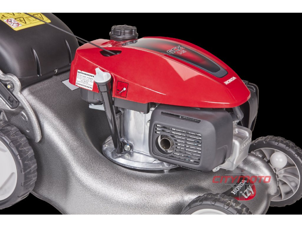 Tato benzínová sekačka není opatřena pojezdem a patří proto mezi nejlehčí sekačky své kategorie na trhu. Díky silnému motoru a originálnímu systému Honda Optiflow je schopna zvládnout i přerostlý nebo dokonce mokrý travní porost. V poměru výkon motoru/velikost se jedná o nejvýkonnější motorovou sekačku na trhu. Ovládací prvky jsou ergonomicky a přehledně uspořádány a ještě umocňují nebývale snadnou manipulaci a obsluhu sekačky. Zbrusu nový motor s automatickým sytičem je opatřen zařízením, které umožňuje velmi lehký start, který bez problémů zvládnou i ženy či fyzicky slabší uživatelé. Výkonem a hlavně kroutícím momentem je nový motor GCVx 145 nejsilnějším motorem na trhu v dané kategorii a lehce překonává i konkurenční motory větších kubatur. Neméně důležitá je také odolnost motoru vůči automobilovým benzínům s obsahem 10% ethanolu. Motor je navíc provozně čistější (plní normu EURO5), úspornější a snadnější na údržbu. Výška střihu trávníku se pohodlně nastavuje rozměrnou pákou samostatně na každé nápravě. Sekačku lze používat ve dvou režimech použití; sekání se sběrem a sekání bez sběru. Tato sekačka bez vlastního pojezdu je opatřena veškerými bezpečnostními prvky včetně bezpečnostní brzdy rotace sekacího nože, která zajistí okamžité zastavení rotace sekacího nože při vypnutí motoru. Robustní a pevná konstrukce podvozku spolehlivě snese působení ohromného výkonu motoru na rotující sekací nůž a navíc v maximální možné míře pohlcuje vibrace, které se dále nepřenáší na ovládací madlo sekačky. Práce je potom příjemnější. Tato Honda je určena pro uživatele, kteří kladou vysoké nároky na sekací výkon, snadnou obsluhu a svou velikostí je vhodná na travnaté plochy o velikosti cca 500 m2.