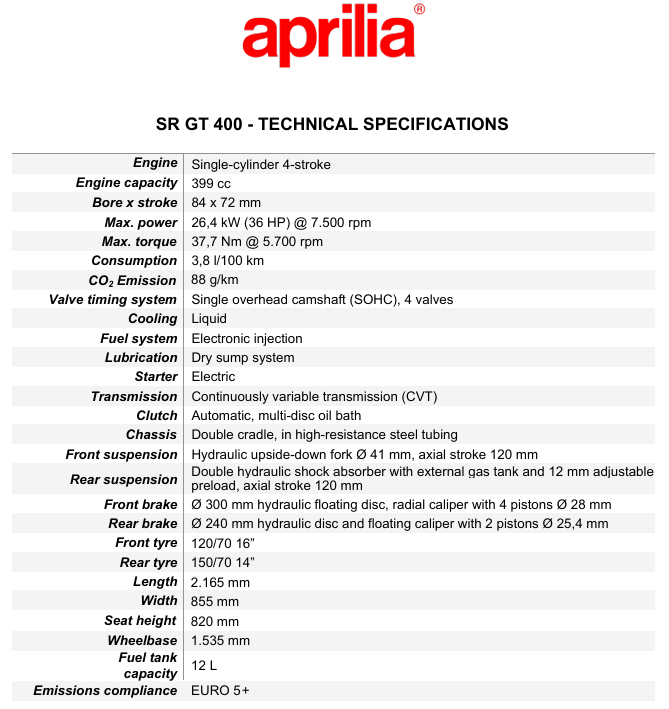 Aprilia SR GT 400 E5+