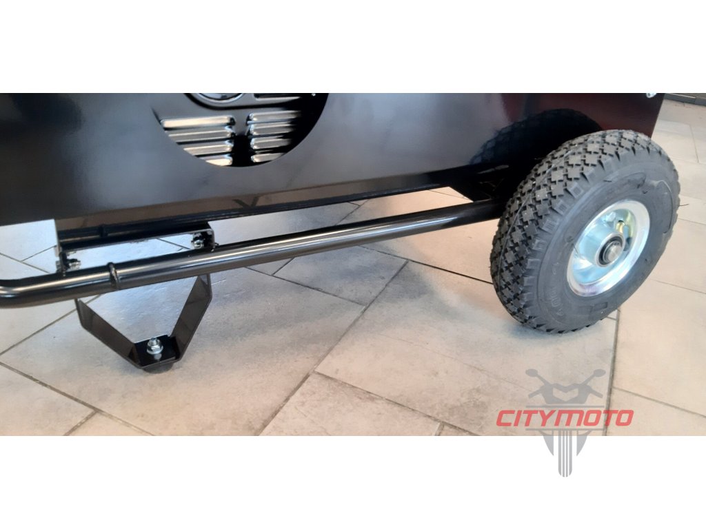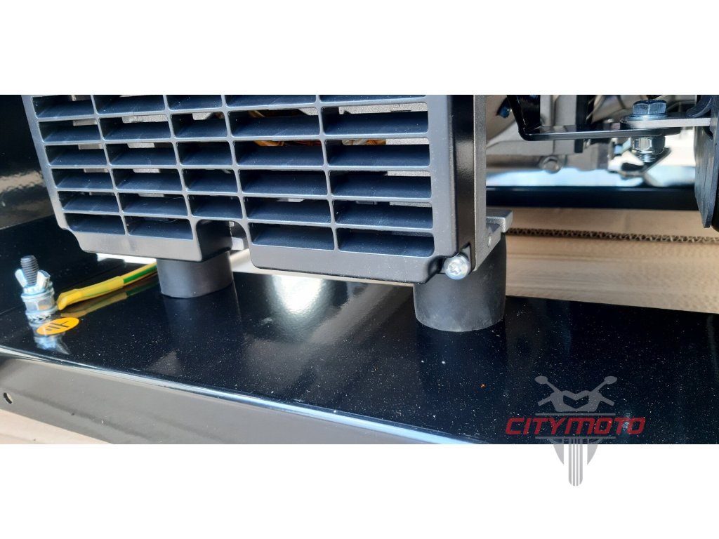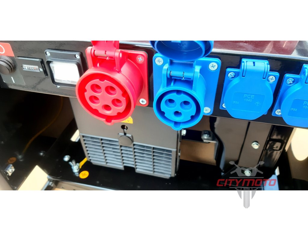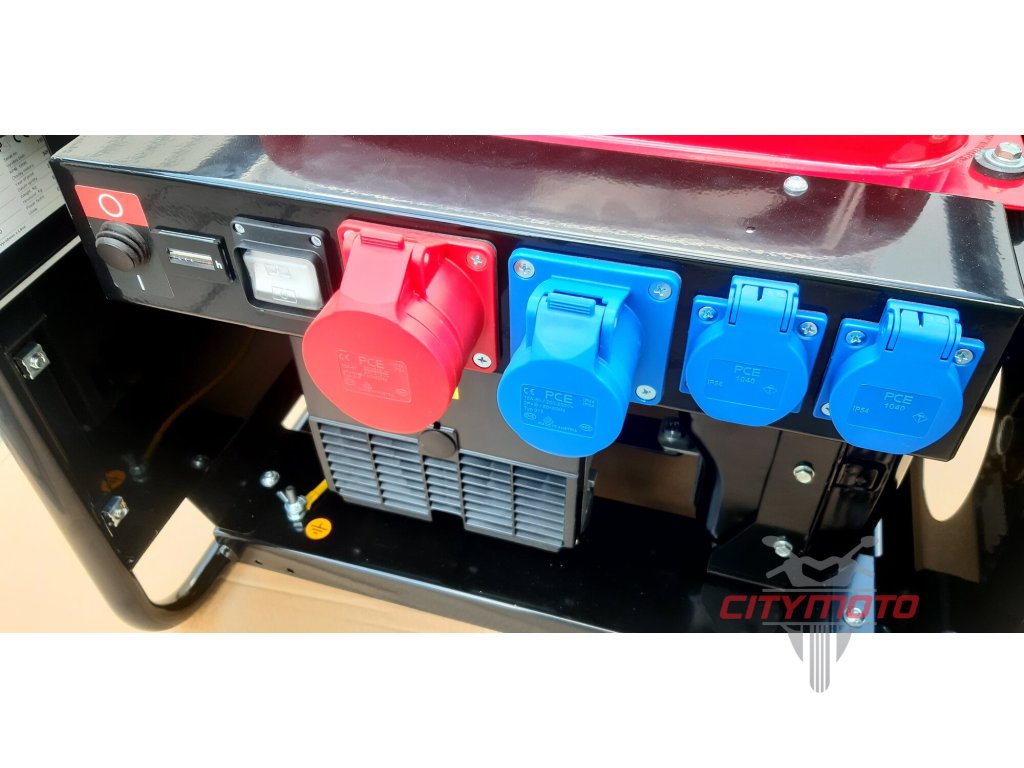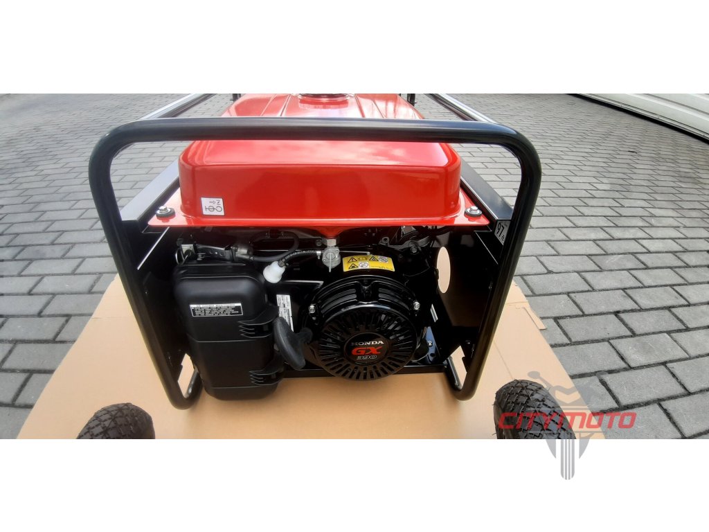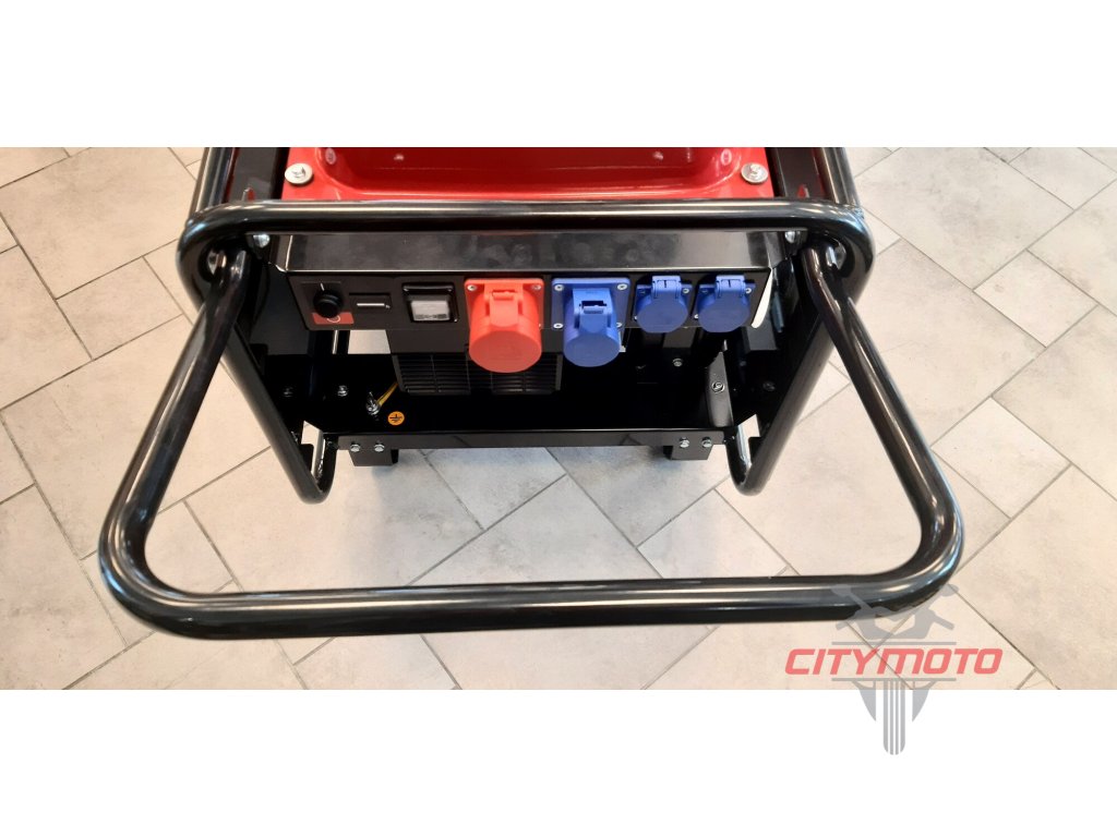 Tato robustní, benzínová elektrocentrála střídavého napětí je svým výkonem max. max. 7,0 kVA (3 f.) / 4,0 kVA (1 f.) si získala velkou oblibu u profesionálních stavebních firam právě díky robustní konstrukci, velké nádrži, vysokému výkonu, spolehlivosti a snadné manipulaci. Pro napájení spotřebičů typu osvětlení, ručního elektronářadí, elektromotorů nebo svařovacích agregátů, bouracích kladiv, míchaček betonu, ponorných čerpadel a pod. se za roky prodeje stala vzorem pro stavební třífázové elektrocentrály s prodlouženou dobu chodu na jedno tankování. Svými rozměry se hodí do pojízdných autodílen, opravárenských vozů pro práci v terénu nebo na staveniště při zakládání staveb a pod. Celá soustava je uložena na pružných silentblocích ve vyztuženém rámu, svařeném z ocelových trubek o průměru 25 mm. Ten zajišťuje mimořádnou ochranu soustavy proti případnému poškození. Pro snadnou manipulaci je elektrocentrála opatřena transportním kolovým podvozkem. Proto, aby alternátor produkoval napětí 400V / 230V / 50Hz, je motor opatřen automatickým, mechanickým regulátorem otáček tak, aby při jakémkoliv odběru proudy byly otáčky motoru konstantní ve výši 3000 ot./min. Elektrocentrála je ovládacím panelem, na kterém jsou přehledně rozmístěny zásuvkami 1x CEE (16A 400V), 1x CEE (16A 230V) a 2x Schuko (16A 230V) s příslušnými tepelnými jističi, vypínač motoru a velmi důležité počítadlo motorhodin, které ocení především v půjčovnách. Ovládání elektrocentrály je velice snadné a jednoduché. Stačí natankovat, elektrocentrálu postavit na vodorovnou plochu, zkontrolovat olejovou náplň motoru, nastartovat zatažením za rukojeť ručního startéru, počkat pár vteřin na ustálení chodu motoru a do příslušné zásuvky připojit napájený spotřebič. Elektrocentrála splňuje veškeré nároky na elektrickou bezpečnost a je opatřena ochrannými prvky jako je ochrana motoru proti úniku oleje nebo alternátoru proti přetížení. Robustní a pevná konstrukce rámu se nekroutí a spolehlivě tlumí působení vibrací od motoru na podklad. Snižuje se tak hlučnost elektrocentrály a práce je potom příjemnější. Údržba elektrocentrály je zcela nenáročná a spočívá v základní údržbě benzínového motoru.