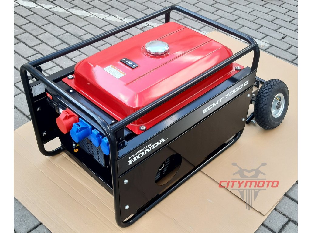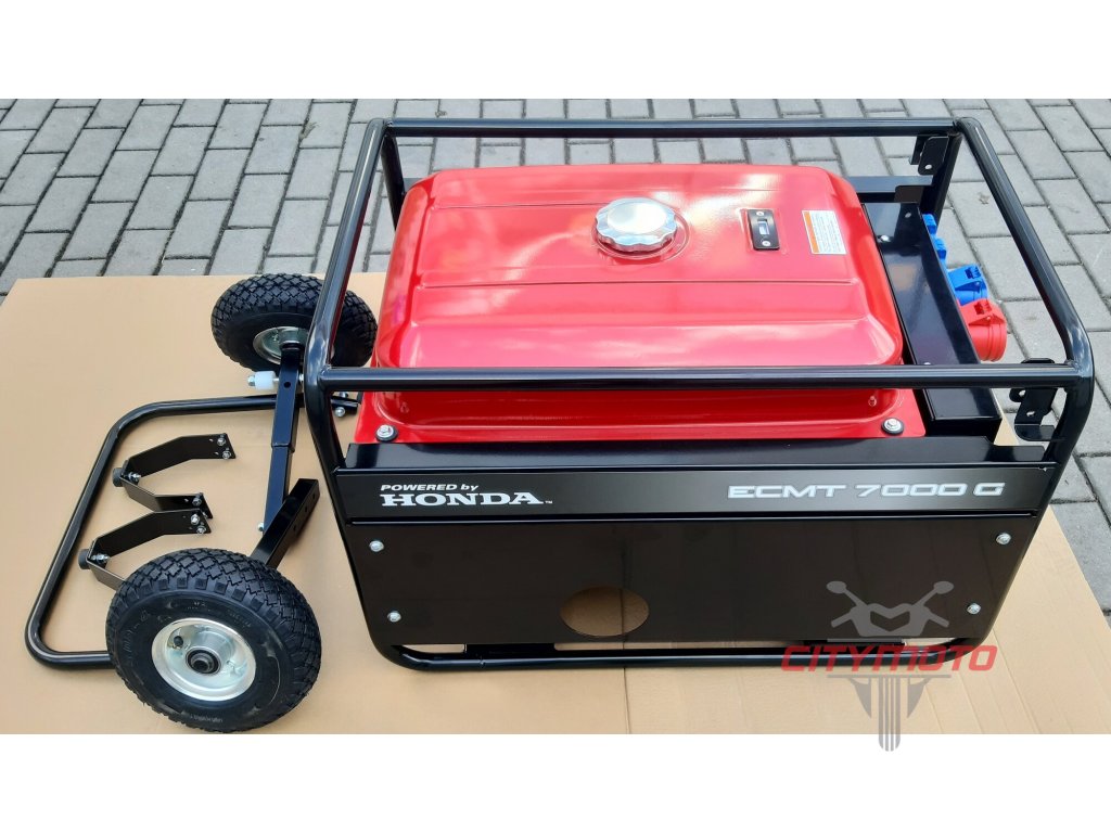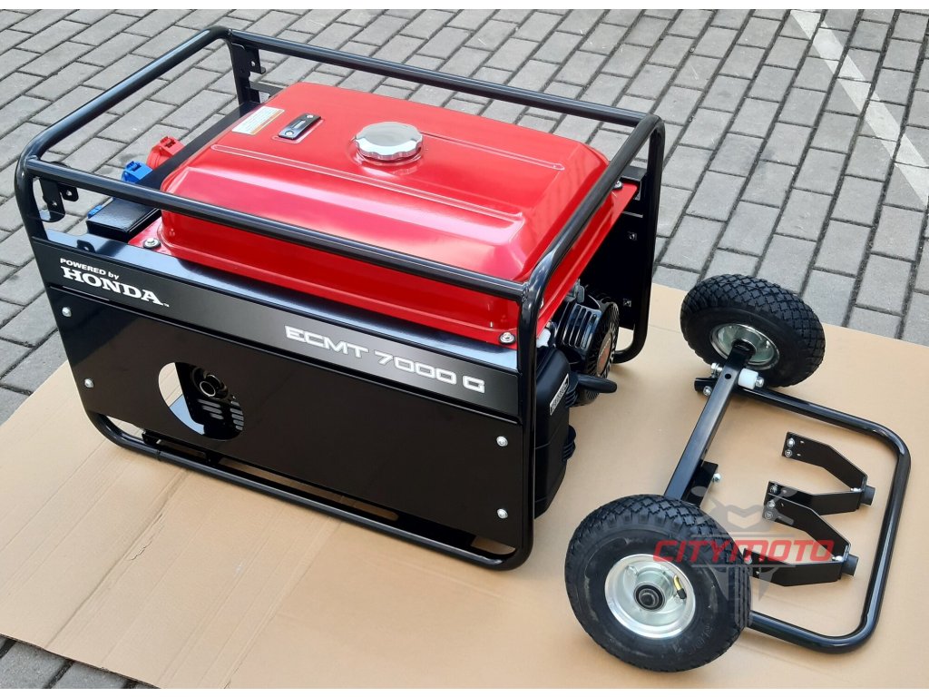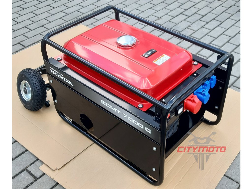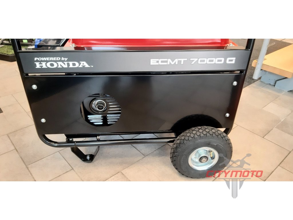 Elektrocentrála ECMT 7000G: model velké, třífázové elektrocentrály s regulací výstupu indukčním trafem. Výkonný a vysoce odolný alternátor pohání spolehlivý profesionální motor řady GX s dlouhou životností, objemnou palivovou nádrží na cca 23 l paliva a to vše ukotveno v pevném a odolném, částečně odhlučněném ocelovém rámu na dvoukolovém podvozku.