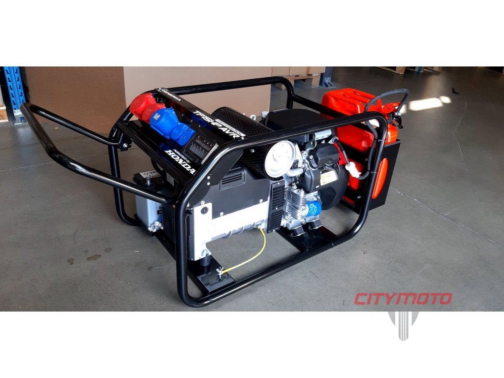 Tato robustní, benzínová elektrocentrála třífázového napětí je svým výkonem 15,0 kVA (3 f.) / 8,0 kVA (1 f.) určena převážně "profíkům" pro napájení celého spektra třífázových elektrospotřebičů a je přímo určena převážně řemeslníkům a profesionálům z oblasti stavebnictví a opravárenství. Svým výkonem se hodí do pojízdných autodílen, opravárenských vozů pro práci v terénu nebo na staveniště při zakládání staveb, údržbu silnic a dálnic a pod. Celá soustava je uložena na pružných silentblocích ve vyztuženém rámu, svařeném z ocelových trubek o průměru 30 mm. Ten zajišťuje mimořádnou ochranu soustrojí proti případnému poškození. Jako palivová nádrž slouží standardní 20 l kanystr, uložený v rámu stroje, který lze snadno vyjmout pro případné tankování. Vzhledem ke své hmotnosti je elektrocentrála opatřena transportním kolovým podvozkem. Proto, aby alternátor produkoval napětí 400V / 230V / 50Hz, je motor opatřen automatickým, mechanickým regulátorem otáček tak, aby při jakémkoliv odběru proudy byly otáčky motoru konstantní ve výši 3000 ot./min. Elektrický výkon elektrocentrály v úrovni "15 kilo" vyžaduje "pořádný" a silný, spolehlivý motor. Ten je zde ve formě benzínového vidlicového dvouválce GX690, který patří k nejvýkonnějším pohonným jednotkám na světě v kategorii 26 HP. Elektrocentrála je opatřena zásuvkovým panelem s přehledně rozmístěnými zásuvkami 1x CEE (32A 400V - tepelný jistič 20A samostatně mimo panel), 1x CEE (16A 400V - jistič 16A), 1x CEE (32A 230V - jistič 32A) a 2x CEE (16A 230V - jistič 10A). Vedle zásuvek je umístěn krytý panel s jističi jak 400V, tak i 230V zásuvek. Ovládání elektrocentrály je velice snadné, jednoduché a uživatelsky velmi komfortní a bezpečné. Stačí natankovat, elektrocentrálu postavit na vodorovnou plochu, zkontrolovat olejovou náplň motoru, nastartovat otočením klíčku zapalování, počkat pár vteřin na ustálení chodu motoru a do příslušné zásuvky připojit napájený spotřebič. Elektrocentrála splňuje veškeré nároky na elektrickou bezpečnost a je opatřena ochrannými prvky jako je ochrana motoru proti úniku oleje nebo alternátoru proti přetížení. Robustní a pevná konstrukce rámu se nekroutí a spolehlivě tlumí působení vibrací od soustrojí na podklad. Snižuje se tak hlučnost elektrocentrály a práce je potom příjemnější. Elektrocentrálu lza za příplatek vybavit zemnícím kolíkem či jiným drobným příslušenstvím. Údržba elektrocentrály je zcela nenáročná a spočívá v základní údržbě benzínového motoru.