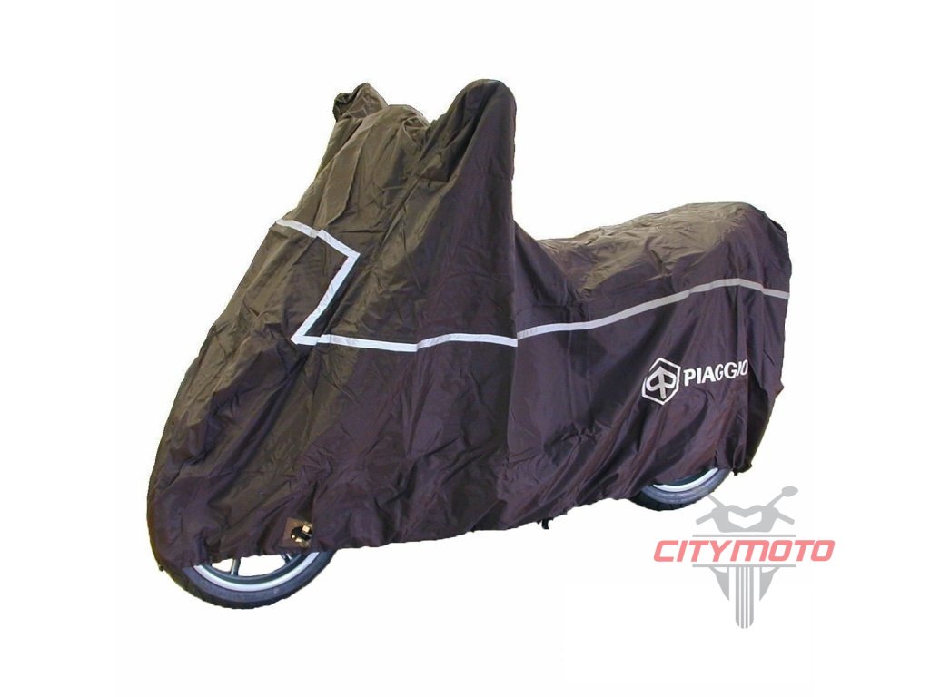 Venkovní plachta s prodloužením pro horní kryt / čelní sklo. Reflexní vložky, průhledné okno pro SPZ. Logo PIAGGIO.