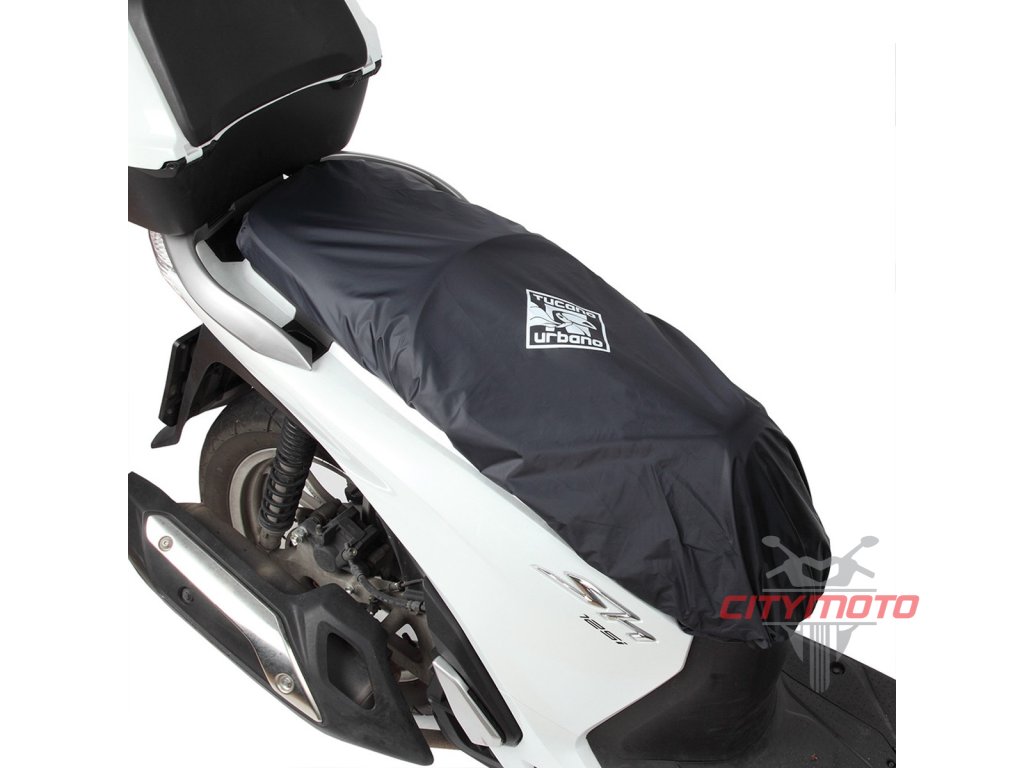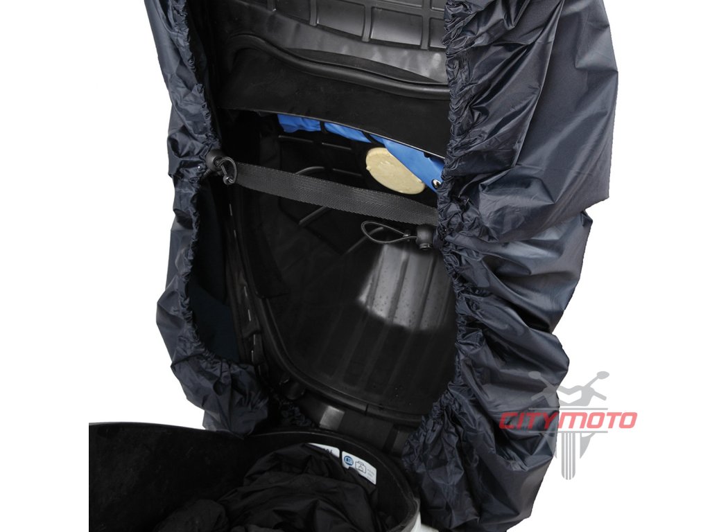 Potah sedáku z polyesteru s voděodolným zátěrem, zapínání pomocí pásku pod sedákem a gumičkou na lemu, integrovaná úložná taška s praktickým háčkem na zavěšení.