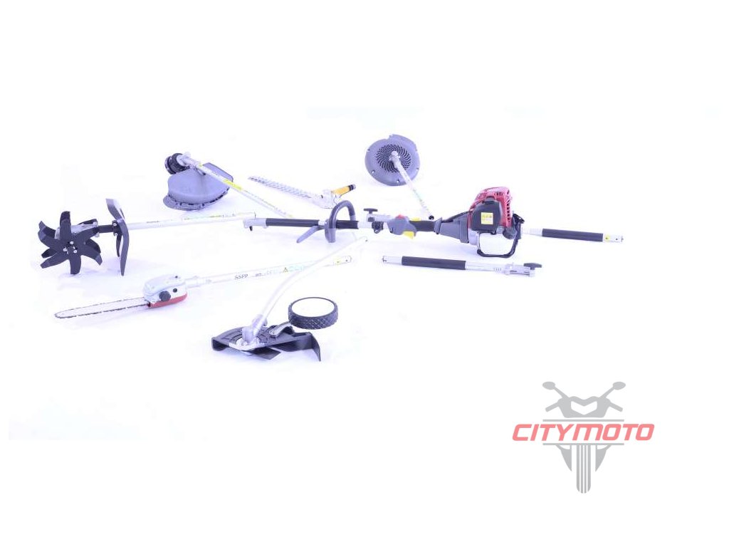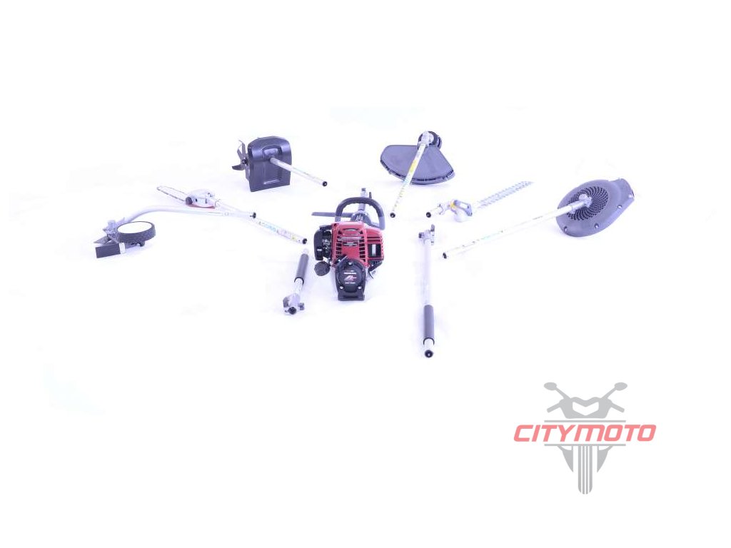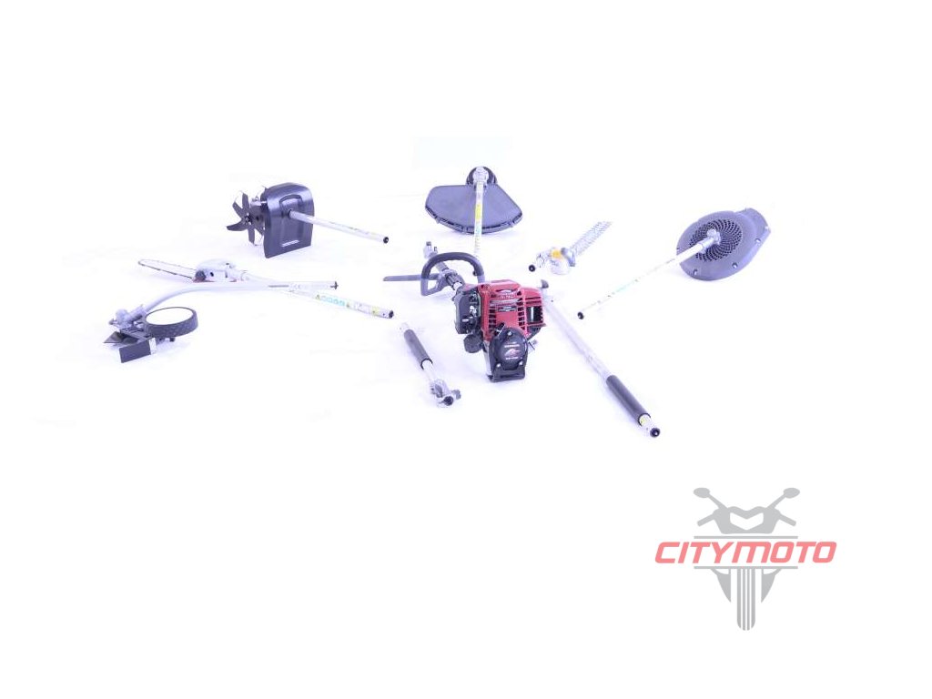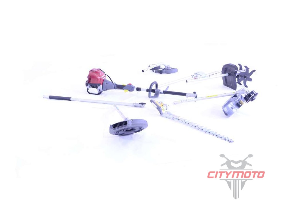 Ekologický, úsporný, tichý a hlavně velmi silný motor ocení hlavně příznivci hlavně z řad farmářů, údržby průmyslových objektů, komunálu a velmi náročných chatařů, chalupářů či majitelů rodinných domků. Patentově chráněný miničtyřtaktní motor 35 ccm o výkonu 1,6 koně je s dostatečnou rezervou bez problémů pohánět celou nabídku pracovních nástavců. Základní výbava stroje zahrnuje kromě stroje samotného, zádový postroj s bezpečnostní karabinou pro zavěšení stroje, základní nářadí pro montáž a základní údržbu a pracovní ochranné brýle. Jako další příslušenství lze v síti autorizovaných prodejců získat celou řadu originálních doplňků jako jsou náhradní struny, kotouče, oleje, přilby, štíty, pilový kotouč, řetízky k prořezávací řetězové pile a další.
