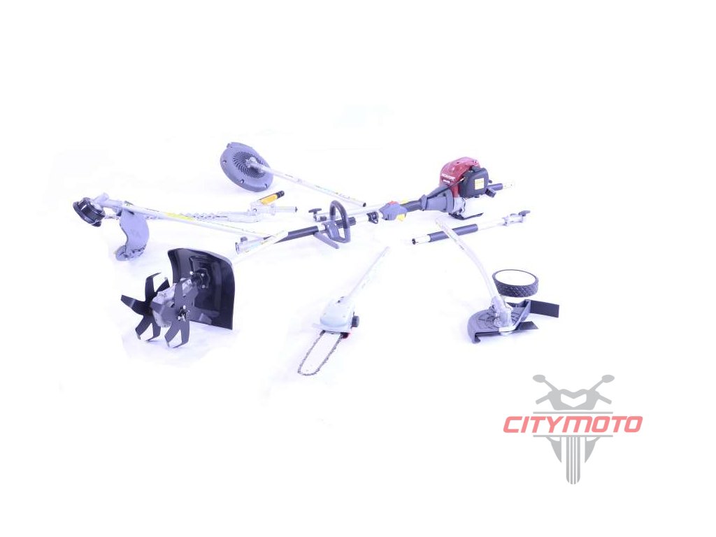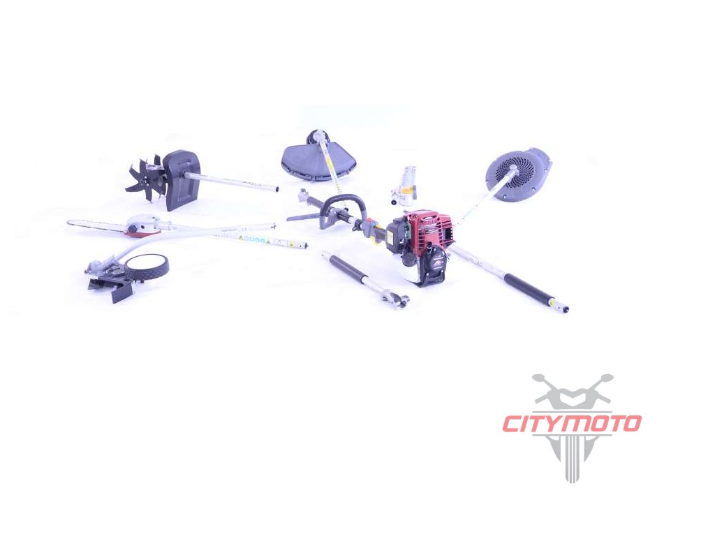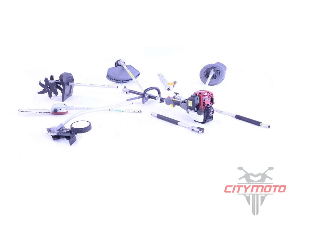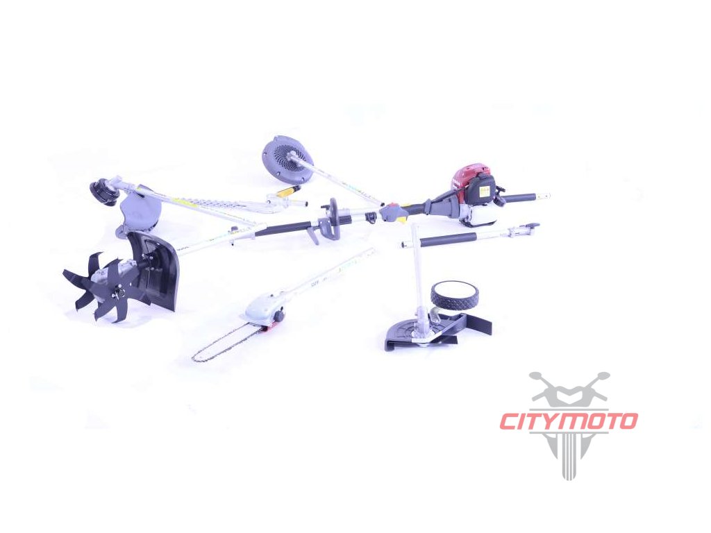 Ekologický, úsporný, tichý a hlavně velmi silný motor ocení hlavně příznivci hlavně z řad farmářů, údržby průmyslových objektů, komunálu a velmi náročných chatařů, chalupářů či majitelů rodinných domků. Patentově chráněný miničtyřtaktní motor 35 ccm o výkonu 1,6 koně je s dostatečnou rezervou bez problémů pohánět celou nabídku pracovních nástavců. Základní výbava stroje zahrnuje kromě stroje samotného, zádový postroj s bezpečnostní karabinou pro zavěšení stroje, základní nářadí pro montáž a základní údržbu a pracovní ochranné brýle. Jako další příslušenství lze v síti autorizovaných prodejců získat celou řadu originálních doplňků jako jsou náhradní struny, kotouče, oleje, přilby, štíty, pilový kotouč, řetízky k prořezávací řetězové pile a další.
