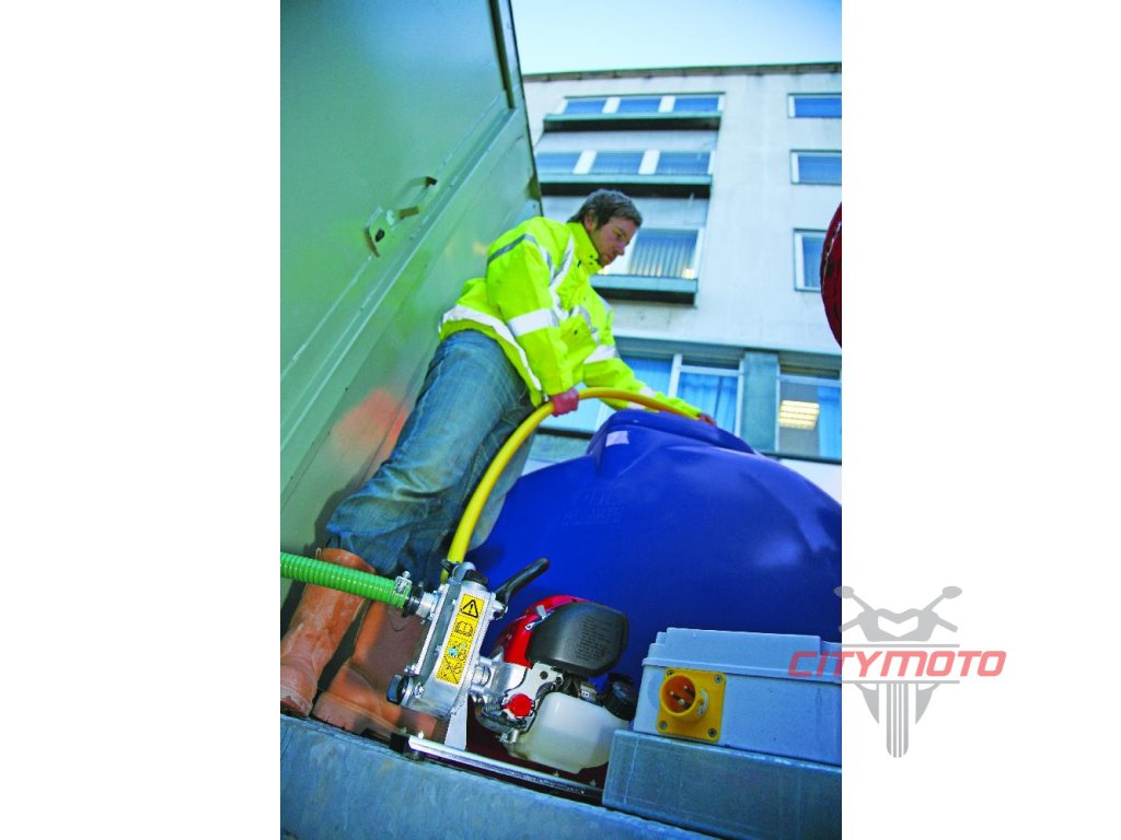 Toto malé, lehké a kompaktní vodní miničerpadlo je svým provedením a výkonem určeno převážně pro přečerpávání vody hlavně v prostředí zahrádkářů, rodinných domků, rybářství a rybářských svazů, drobných farmářů, majitelů lodí a přístavišť a pod. Svými kompantními rozměry a nízkou hmotností se hodí na každou zahradu, k rodinnému domku, rybářskou baštu nebo na palubu rekreační nobo i profesionální pracovní lodi. Celé soustrojí je uloženo v pružných silentblocích na ocelové základové desce. Výkonný, úsporný, tichý motor, schopný udržet konstantní výkon i při skokovém zatěžování. Patentově chráněný miničtyřtaktní motor o obsahu 35 ccm o výkonu 1,6 PS je s dostatečnou rezervou bez problémů schopen pohánět i vodní čerpadlo. Základní výbava čerpadla zahrnuje kromě stroje samotného také sací koš, příslušné šroubení a hadicové nástavce s hadicovými svorkami pro zahradní hadici o průměru 25 mm. Ovládání čerpadla je velice snadné a jednoduché. Stačí natankovat, čerpadlo postavit na vodorovnou plochu, čerpací skříň zalít čistou vodou, motor nastartovat zatažením za rukojeť ručního startéru, počkat až si čerpadlo nasaje vodu sací hadicí. Po nasátí vody lze množství přečerpávané vody regulovat otáčkami motoru. Čerpadlo je utěsněno velmi kvalitní mechanickou hřídelovou ucpávkou z karbidu křemíku, která je sice velmi odolná vůči abrazivnímu působení přečerpávané kapaliny, ale velmi náchylná na přehřátí. Proto je nutné před nastartováním motoru vždy čerpadloo zalít vodou. Díky přesnému odlévání čerpadlové skříně a přesnému spasování s oběžným kolem ve výrobě nedochází za chodu čerpadla ke zbytečným únikům a čerpadlo ja schopno poskytovat vysokou sací schopnost na vstupu a vysoký tlak na výstupu z čerpadla. Konstrukce čerpadla je dostatečně robustní a pevná nekroutí se a spolehlivě tlumí působení vibrací od motoru na podklad. Snižuje se tak hlučnost čerpadla a práce je potom příjemnější. Údržba čerpadla je zcela nenáročná a spočívá v základní údržbě benzínového motoru a proplachování čerpadla po použití znečištěné, či jinak agresivní vody.