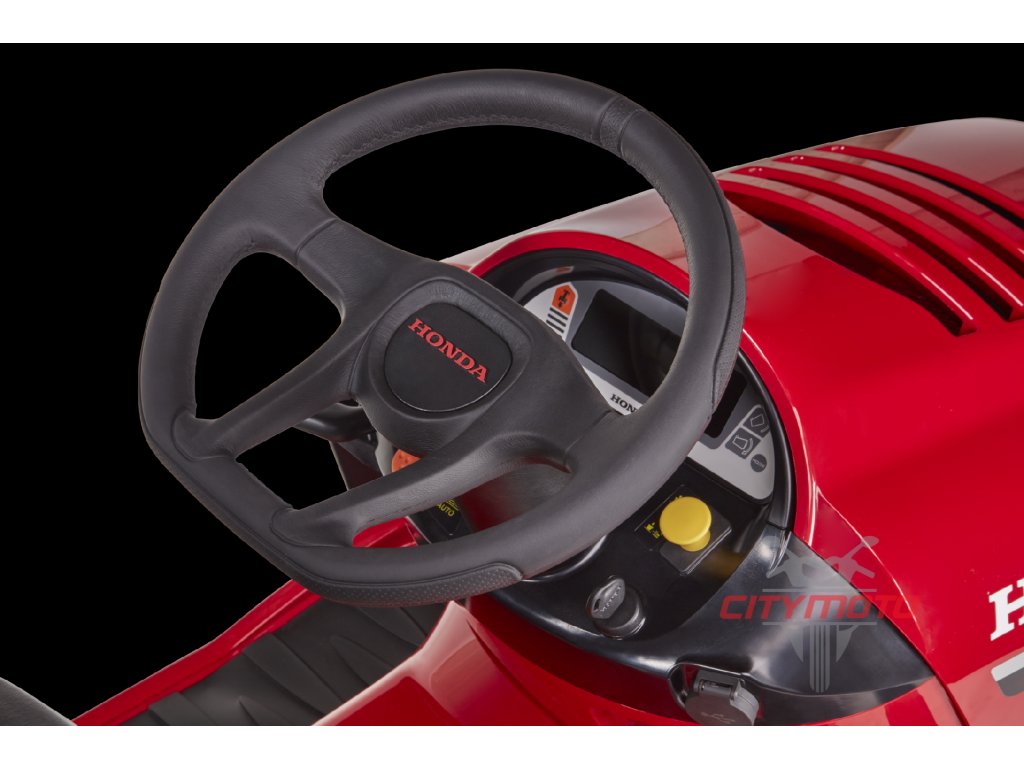 Svým vybavením uspokojí i toho nejnáročnějšího zákazníka jak z hlediska výkonů, tak i z hlediska komfortu. Traktor je opatřen elektrickým ovládáním sběrného koše. Pro některé uživatele může být manuální vyprázdnění naplněného sběrného boxu trávou, který může při vyšší vlhkosti vážit i několik desítek kilogramů, obtížnější. Zde tuto práci traktor obstará za vás při stisknutí příslušného tlačítka na přístrojové desce. Se sečením o záběru 102 cm si poradí s likvidací travního porostu i na ploše o velikosti několika tisíc metrů čtverečních a přitom svou velikostí je velmi obratný a lze s ním manévrovat i na poměrně členitých zahradách či plochách. Tomu přispívá i způsob ovládání rychlosti jízdy, kdy dle míry stlačení pojezdového pedálu plynule regulujete rychlost od nuly do cca 8,2 km/hod. Traktor je opatřen 4 stupňovým tempomatem, který automaticky udržuje nastavenou rychlost jízdy. Praktická schránka se zásuvkou USB pro dobíjení umožňuje obsluze mít mobilní telefon neustále po ruce. Přehledný barevný LCD displej na přístrojové desce neustále hlídá všechny důležité pracovní parametry. Hřebenové řízení je přesné a poloměr zatáčení vám umožní perfektně „obkroužit“ i keře, stromy, záhony nebo jiné překážky. Ergonomická geometrie umístění komfortní sedačky s vysokou zádovou opěrkou a loketními opěrkami, komfortně potaženého volantu příjemného průměru věnce a ovládacích prvků vám umožní i dlouhodobou práci bez pocitu únavy. Srdcem traktoru je pohonná jednotka Honda GCV530, vidlicový ležatý dvouválec s rozvodem OHC, zdvihového objemu 530 ccm a výkonové kategorie 17 koní. U strojů, jakým je zahradní traktor je velmi důležitá schopnost udržet si konstantní kroutící moment, který je zde bezkonkurenčních více než 34 N.m.